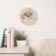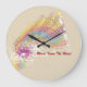 Deja que estas notas musicales de colores vivos fluyan por tu día en un reloj acrílico de fondo beige en tu habitación.