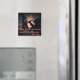 Magnet con imagen de un hombre en silueta tocando un saxofón contra una luna llena con una cita sobre música.