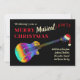 Traiga algo de alegría musical de guitarra festiva a la temporada navideña con esta divertida y alegre tarjeta musical de Navidad moderna y genial. Divertida guitarra eléctrica semiacústica psicodélica y funky dibujada a mano con colores brillantes que lleva un sombrero de Santa con notas musicales y tipografía, todo fácil de personalizar con la plantilla. Ideal para familias amantes de la música para enviar saludos de temporada y para guitarristas, profesores de música y músicos. Arte original de Catherine Sweetman