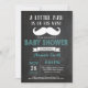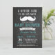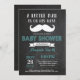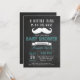 Invitación de Baby Shower a Mustache. Pequeño Hombre. Aqua y Grey. Fondo del tablero negro y blanco. Pajarita. Caballero. Para una mayor personalización, haga clic en el botón "Personalizar" y utilice nuestra herramienta de diseño para modificar esta plantilla.