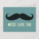 ¡Nuestro bigote necesita el amor demasiado divertido las postales son una buena idea de regalo para todas las ocasiones! El diseño presenta el moderno motivo bigote con un fondo azul moderno y un texto en blanco. Perfecto para saludos rápidos, escritos a mano, invitaciones para fiestas con bigote, etc. Descuentos por volumen disponibles!