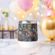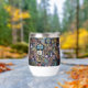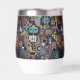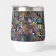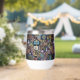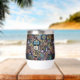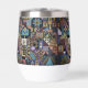 Structure: A dense, tiled mosaic of non-repeating blocks featuring stylized nature, geometric shapes, and cultural/symbolic iconography.