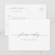 This muted gray simple menu choice rsvp postcard is perfect for a modern wedding. The simple and elegant design features classic and fancy script typography in gray and white.