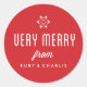 Un único, festivo, pegatina circular de inspiración vintage con un copo de nieve, la frase "Muy Feliz", ¡y tu nombre! Perfecto para regalos de vacaciones, paquetes, decoración, tarjetas y sobres!