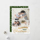 Un personalizado asequible imprimió tarjetas de foto navideñas con una plantilla sencilla de DIY para personalización. Este divertido diseño presenta tipografía caprichosa en Relieve metalizado de oro verde y falso. El mensaje decía "Te deseo una feliz Navidad". La plantilla tiene espacio para 3 fotos familiares. Utilice las herramientas de diseño para editar las fuentes y los colores. El lado inverso tiene un patrón de puntos abstracto de coordinación o usa el espacio para agregar más fotos y texto.