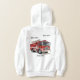 A child’s white hoodie featuring a playful graphic of a red fire truck, detailed with ladders and sirens. Beneath the truck, bold text reads: “My Dad Is A Member Of the Woo Woo Crew,” blending heartfelt pride with a touch of humor. The design celebrates a parent’s role as a firefighter, using the whimsical “Woo Woo” to echo the sound of sirens and spark joy.