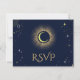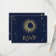 Tarjeta de respuesta boda personalizada mística celestial con galaxia vía lechosa cielo de medianoche con polvo estrella, luna creciente y otros símbolos astrológicos en colores azul marino y dorado. Esta tarjeta es fácilmente editable. Si necesitas ayuda para personalizar esta tarjeta o necesitas más productos para esta colección, por favor envíame un mensaje a través de Zazzle.