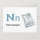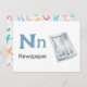 "La carta N es para el periódico" en nuestro juego de tarjetas flash alfabetas. ¡Obtén las 26 letras del alfabeto! Una tarjeta postal de doble cara que es ideal para juegos de memoria y enseñanza, dirigida a la educación, escuelas, profesores y escolares para niños en kindergarten y bebés. Todo el texto es editable si necesita un personalizar.