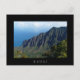 Postal de los escarpados acantilados del valle de Kalalau en la costa de Na Pali de Kauai, Hawaii, EE.UU. visto desde el mirador del valle de Kalalau y accesible a través del sendero de Kalalau con una frontera negra y el texto: 'Kauai'.