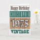 Una tarjeta de cumpleaños con el año de nacimiento. Si busca una tarjeta que muestre el año de nacimiento del destinatario, entonces ésta es para usted. Añade tu elección de nombre y mensaje interno. 1975 significa que el receptor tiene 50 años en 2025.
