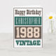 Una tarjeta de cumpleaños con el año de nacimiento. Si busca una tarjeta que muestre el año de nacimiento del destinatario, entonces ésta es para usted. Añade tu elección de nombre y mensaje interno. 1988