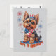 Nacido en Sparkle - Cuta tarjeta plana del 4 de julio con Patriotic Yorkie Celebrar el 4 de julio con un estallido de cortesía y encanto patriótico! Esta adorable tarjeta plana tiene un yorkie esponjoso vestido de rojo, blanco y azul con el alegre mensaje "¡Nacido para la espuma!". Perfecto para enviar deseos festivos a amigos, familiares y amantes de perros. ¡Difundan alegría, brillo y furor el amor de este Día de la Independencia con un único y divertido saludo patriótico! 4 de julio, tarjeta de saludo de yorkie lindo, tarjeta de perro patriótico, Nacido al 4 de julio, saludos por el Día de la Independencia, tarjeta de vacaciones de amante de los perros, cachorro azul blanco rojo, adorable tarjeta de yorkie patriótico, fuegos artificiales y tarjeta de piel, tarjeta festiva estadounidense.