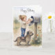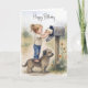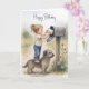 Una niña se para en la espalda de un perro esponjoso, llegando a poner un sobre en un buzón enclavado entre flores silvestres. Todo el texto es editable.