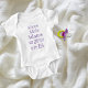 Vestir a su pequeño con estilo con este traje de bebé de Nacimientos personalizado! Presentando el primer, medio y apellido de su bebé junto con sus estadísticas especiales (fecha, hora, peso y longitud) en un divertido tipo de letra esbozado. Diseñado con una tipografía violeta para un alegre pop de color, es cómodo, adorable y hace que los padres de familia aprecien un conservador o un regalo de ducha para bebés.