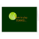 Una tarjeta humorística para tus amigos del tenis. Para todas mis pinturas acuáticas originales en la tienda, uso la "paleta limitada". Rojo, Amarillo, Azul. Esto produce todos los matices y tonos que ves en mis pinturas. Las acuarelas transparentes, rojas, amarillas y azules en tonos cálidos y fríos pueden mezclarse para obtener cualquier color del espectro. Encuentro que hay más control sobre los resultados finales. Mi trabajo de arte abarca una amplia gama de temas. Pinto un arte absolutamente humorístico en el arte fino y serio, sin embargo, mi pasión es pintar retratos de animales y personas. Me encanta capturar la emoción del momento. Ambos temas tienen sus propias personalidades. Esto hace que el resultado final sea muy difícil Y gratificante. Mi medio principal es la acuarela. Sin embargo, también trabajo con grafito, pluma y tinta. Enlaces directos a mi tienda: http://www.zazzle.com/Nanwright?rf=238428852843633817 O https://www.zazzle.com/nanwright