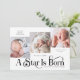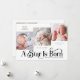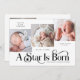 Bienvenido tu pequeño al mundo y comparte la alegría de la temporada con nuestra elegante tarjeta de presentación de Navidades, muy bien titulada "Una estrella nace". Con tres adorables fotos de bebés en la parte delantera y una en la parte trasera, este diseño combina tipografía moderna con encanto festivo. Personalízalo con el nombre, fecha de nacimiento, peso y longitud de su bebé, además de un mensaje de agradecimiento sincero a amigos y familiares. Perfecto para enviar saludos de vacaciones al presentar a su nuevo miembro de la familia. Ideal para los nacimientos de invierno, las duchas para bebés de vacaciones o para los seres queridos. Impreso en tarjetas de alta calidad con impresión fotográfica a todo color para una invitación realmente especial. El fondo es blanco.