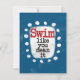 Un bonito diseño de nadador tipográfico que dice "Nadar como quieres decir". Presenta texto en negro y rojo sobre un rectángulo blanco con puntos blancos divertidos y juguetones rodeándolo, todo sobre un fondo azul.