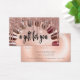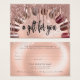 Certificado de regalo de uñas de oro rosa moderno y elegante. Funciones de diseño conjunto de clavos, gotas rosas de purpurina de oro, guión de tipografía ''un regalo para ti'' en negro sobre un fondo de oro rosa. Personaliza tus datos en la parte posterior.