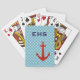 Los naipes diseñaron con las ondas azules y el ancla roja con el monograma de los azules marinos. Un regalo perfecto para un amigo o los recienes casados.