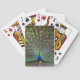 Esta cubierta de los naipes estándar (52 + 2 comodines) muestran un pavo real que exhibe orgulloso sus plumas de cola coloridas.