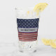 This American-style pint glass, also known as a shaker glass, with "USA 250 years 1976-2026" in a dark blue and grey frame is featured on this trendy collector's glass. The background on front and back is red and blue stars on the top half and horizontal red stripes pattern on the bottom printed on rustic weathered wood for a vintage look. Family name is on the back in a retro typewriter font. Change the name to make it yours using the Template provided. To edit and change font style-color-size and more-- use the Design Tool. Made with top quality Libbey barware, 16oz capacity and measures 3.5"diameter x 5.875"h. Excellent printing. See "About" this product for more information. ---->>>Hand wash only.<<<-----