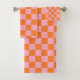 Arte digital abstracto de cuadrados anaranjados y rosados en una formación a cuadros.