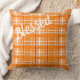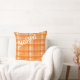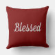 La almohada de hilado se muestra con una almohada de color personalizado, con la palabra "Bendita" en blanco en la parte superior izquierda de la almohada. Colores trabajados: Melocotón, naranjas de calabaza, blanco, gris plateado y borgoña, el reverso es de Borgoña maciza con un gran gris plateado "bendecido" en el centro. Personalizar esta almohada o compra como está.