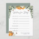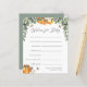 Pronuncie a los clientes de las duchas para que compartan sus deseos de bebé con este dulce diseño. Coloque una pila en la entrada del evento, párela o deje una en cada lugar. También hace una broma para la futura mamá cuando se recopila en una caja de bonito o un encuadernador. Diseñado para adaptarse a nuestra colección de duchas para bebés Naranjas Blossom Honey, este diseño inspirado en la naturaleza del verano incluye follaje acuático verde, un frasco de miel y pequeños ilustraciones de abejas. Personalice con la madre el nombre y la ducha de bebé a lo largo de la parte inferior.