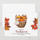 Celebre el espíritu de gratitud con esta hermosa tarjeta de felicitación de Acción de Gracias, que incluye una canasta rústica llena de calabazas naranjas brillantes y hojas de otoño. Diseñada en cálidos tonos estacionales, esta carta captura la acogedora esencia de la cosecha de otoño y la alegría de dar gracias. El mensaje editable en la parte delantera te permite personalizar tu saludo, haciéndolo perfecto para enviar amor, risas y aprecio a amigos, familiares o colegas. Tanto si comparte deseos de vacaciones a lo largo de las millas como si agrega una nota sentida a un regalo de temporada, esta tarjeta es una manera atemporal de hacer el Día de Acción de Gracias más memorable.