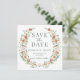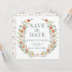 Moda y sofisticada, esta invitación a la foto Save the Date para un boda boho muestra un elegante tema rústico botánico con cálidos flores de naranja y terracota.