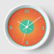 Un diseño de reloj en naranja y verde agua en un fondo blanco. Relojes simplistas y de buen gusto por Orientcourt. Coincide con la decoración con muchos colores y diseños elegantes.