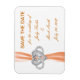Este hermoso ahorrador imán de fecha es una manera elegante y duradera de anunciar su gran día. Personalice el imán cambiando el texto en los campos proporcionados. Puede cambiar el estilo de fuente, el tamaño y el color, así como el color de fondo.