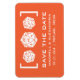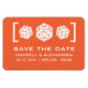Este juego de dados D20 Guardar el imán de fecha en naranja es perfecto para la pareja de nerds que se enamoró de un interés compartido en jugar a rol y quisiera anunciar a su boda que muestra esta parte de sus personalidades. Este diseño anticuado presenta un trío simple y minimalista de muerte veintidós. Fácil de personalizar, simplemente agregue los detalles de su boda en los campos de texto proporcionados. Haga clic en "Personalizar" para encontrar más opciones de personalización.