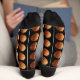 Las fotos son pelotas de naranja tradicionales en un fondo negro