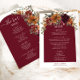 Eleva la recepción de tu boda con nuestra tarjeta de menú de doble cara, con un impresionante diseño floral burdeos y naranja quemado. Por un lado, el menú de la recepción para la cena se muestra, y por el otro, el menú del bar. Ideal para añadir elegancia y comodidad a su día especial. Explore nuestros artículos de coordinación disponibles en la tienda para que su aspecto sea coherente y elegante. c) El estudio Happy Cat Studio
