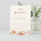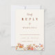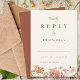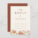 Esta elegante y romántica tarjeta de recinto RSVP de boda de naranja quemado por flores silvestres está diseñada para complementar cualquiera de las invitaciones de boda de otoño con flores silvestres. Con una armoniosa mezcla de tonalidades otoñales como naranja quemado, terracota, coral, melocotón, madera quemada, violeta, amarillo y tierra, esta carta capta la esencia de una celebración de otoño. Las delicadas flores silvestres acuáticas pintadas a mano evocan el calor y el encanto de la temporada. La terracota de melocotón y el beige añaden elegancia, mientras que los llamativos florales en tonos naranja quemado, amarillo, madera quemada, naranja, melocotón, coral, violeta y rosa aportan un toque de belleza a la naturaleza. El guión elegante y la tipografía moderna infunden la carta con sofisticación, lo que la convierte en la forma perfecta de invitar a sus invitados a compartir en su día especial. Diseñada por la artista Catherine Sweetman, esta tarjeta RSVP mantiene el ambiente íntimo y acogedor de una celebración inspirada en el boho, a la vez que ofrece un formato fácil de personalizar para que sus huéspedes respondan. El diseño atemporal y los colores atractivos garantizan que esta carta sea el complemento perfecto para su invitación a la boda, ofreciendo un toque cálido y sincero a su evento.