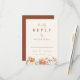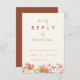 Esta elegante y romántica tarjeta de alojamiento RSVP de boda de casamiento de terracota naranja quemada por una flor silvestre está diseñada para complementar las invitaciones de casamiento de flor silvestre. Con una armoniosa mezcla de tonalidades otoñales como naranja quemado, terracota, coral, melocotón, madera quemada, violeta, amarillo y tierra, esta carta capta la esencia de una celebración de otoño. Las delicadas flores silvestres acuáticas pintadas a mano evocan el calor y el encanto de la temporada. La terracota de melocotón y el beige añaden elegancia, mientras que los llamativos florales en tonos naranja quemado, amarillo, madera quemada, naranja, melocotón, coral, violeta y rosa aportan un toque de belleza a la naturaleza. El guión elegante y la tipografía moderna infunden la carta con sofisticación, lo que la convierte en la forma perfecta de invitar a sus invitados a compartir en su día especial. Diseñada por la artista Catherine Sweetman, esta tarjeta RSVP mantiene el ambiente íntimo y acogedor de una celebración inspirada en el boho, a la vez que ofrece un formato fácil de personalizar para que sus huéspedes respondan. El diseño atemporal y los colores atractivos garantizan que esta carta sea el complemento perfecto para su invitación a la boda, ofreciendo un toque cálido y sincero a su evento.