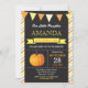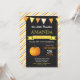 Invitación de cumpleaños de calabaza. Pequeña Invitación de cumpleaños a la caída de calabaza. 1.ᵉʳ Primer Cumpleaños. rayas naranjas y amarillas, fondo de pizarra. Para una mayor personalización, haga clic en el botón "Personalizar" y utilice nuestra herramienta de diseño para modificar esta plantilla.