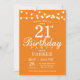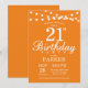 Invitación de cumpleaños 21 con String Lights. Antecedentes del Naranja. Invitar a los hombres o mujeres Lady Elegant. 13. 15. 16. 18. 20. 21. 30. 40. 50. 60. 70. 80. 90. 100. Cualquier edad.