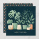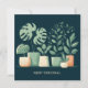 Ilustracion minimalista personalizable de macetas de plantas interiores sobre un fondo azul claro. Presenta plantas verdes frondosas, como una monstera, viñas en cascada y una planta manchada en macetas estampadas. Verdes suaves, líneas simples y un diseño limpio y apacible para un aspecto botánico moderno.