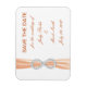 Este hermoso ahorrador imán de fecha es una manera elegante y duradera de anunciar su gran día. Personalice el imán cambiando el texto en los campos proporcionados. Puede cambiar el estilo de fuente, el tamaño y el color, así como el color de fondo.