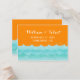 Estas preciosas tarjetas bodas cuentan con el océano y las olas en tonos azules con fondo naranja. Una moda y un diseño moderno, perfecto para los bodas de la playa, los bodas náuticos y las bodas de destino. Puede personalizar de los campos de texto de ejemplo a su gusto. También hay otras invitaciones para hacer correspondencias.