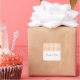 Sencillo pero elegante Boda Houndstoth Gracias a los Pegatinas con un naranja de moda y fondo de patas traseras blancas. Fácil de personalizar con los detalles de su boda. Para obtener más opciones de personalización, haga clic en el botón Personalizar.