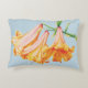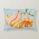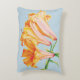 Bell naranja luce arte fino en un cojín de almohada de color azul cielo, creado a partir de un lápiz original y pintura acuarela "Lilies" de Sarah Trett.