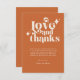 Estas tarjetas de agradecimiento de boda naranja y crema moderno retro son una excelente manera de agregar un toque de personalización a tu gran día. La paleta de colores de naranja y crema le da un aspecto extra moderno, pero con un look retro vintage. Di gracias con Amor y Gracias.