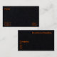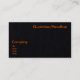 Esta elegante tarjeta de visita cuenta con letras de neón naranja impresas en un material negro de color negro azabache lujosamente suave. Es un diseño llamativo que seguramente causará una impresión duradera. Este diseño hace una declaración audaz, incluso con su enfoque minimalista.
