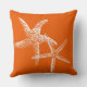 Plaza naranja persimmon, tirar almohada con dos estrellas de fondo blanco. Decoración de casa costera.