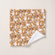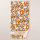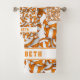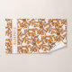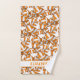 Este único juego de toallas de voleibol tiene un patrón aleatorio de naranja de tamaño variado y bolas de voleibol estilizadas blancas giradas a cada lado en un fondo blanco - personalizar la toalla de baño y la toalla de mano con su nombre - por katz_d_zynes