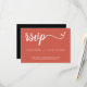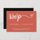 Gestione sin esfuerzo sus respuestas de eventos con nuestro "RSVP de script simple de Naranja quemado sin necesidad de enviar un correo electrónico". Esta tarjeta RSVP combina simplicidad, elegancia y funcionalidad, lo que lo convierte en una elección perfecta para la planificación contemporánea de eventos. La letra manuscrita del guión de moda en colores naranja, negro y blanco quemados ofrece un aspecto clásico y de moda que se adapta a cualquier tema del evento. Diseñada para mayor comodidad, esta tarjeta RSVP está diseñada para los huéspedes que prefieran recibir respuestas por correo electrónico o por teléfono. Elimina la necesidad de que los clientes devuelvan la tarjeta por correo, ahorrando tanto tiempo como costes. La tarjeta especifica claramente el número de invitados e incluye un espacio para la información de contacto, lo que simplifica el proceso RSVP. Esta versión no sólo es rentable, sino que también es respetuosa con el medio ambiente. Puede personalizarlo para adaptarlo a las necesidades específicas de su evento, asegurándose de que se incluyen todos los detalles necesarios. Sugerencia: Mejora la apariencia de la tarjeta con un lápiz metálico para nombres de asientos reservados u otros toques especiales. Si necesita ayuda para personalizar este diseño para que se ajuste perfectamente a su evento, no dude en ponerse en contacto con info@lddesignloft.com.