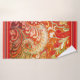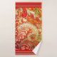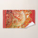 Elegante juego de toallas que hace una declaración audaz. Sombreado de rojo brillante, naranja, amarillo un rico efecto brocado.